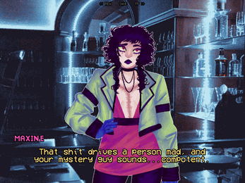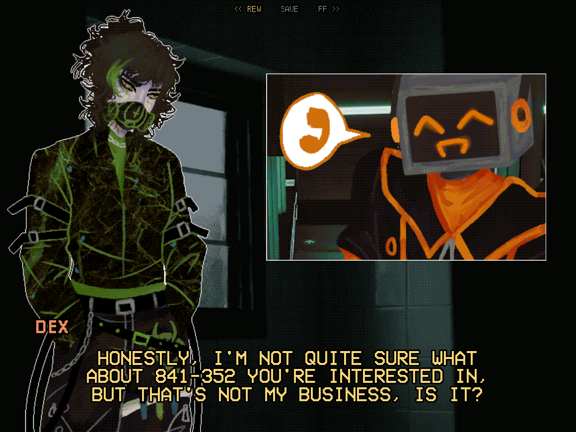 - Two characters in a weird cyberpunk-esque city on the edge of nowhere