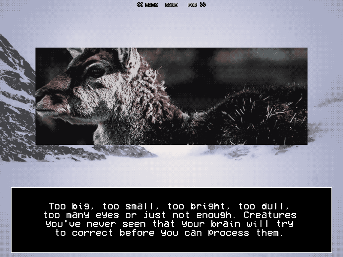 you are a hunter who has traveled north to the desolate wastes, a stretch of tundra in a fictional world. your task is to bring game home to your community to prove your worth.